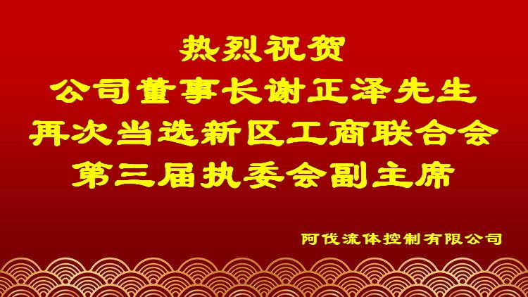 replace流体控制有限公司董事长谢正泽先生再次当选西海岸新区工商业联合会第三届执行委员会副主席,公司全体员工向董事长谢正泽先生再次当选表示热烈的祝贺。